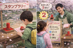 桜を知るスタンプラリーを実施します。また、新境川にフォトスポットを作って、ここでしか撮れない1枚を撮影いただけます。夜は百十郎桜の桜並木もライトアップしよう!って企画を進めています!